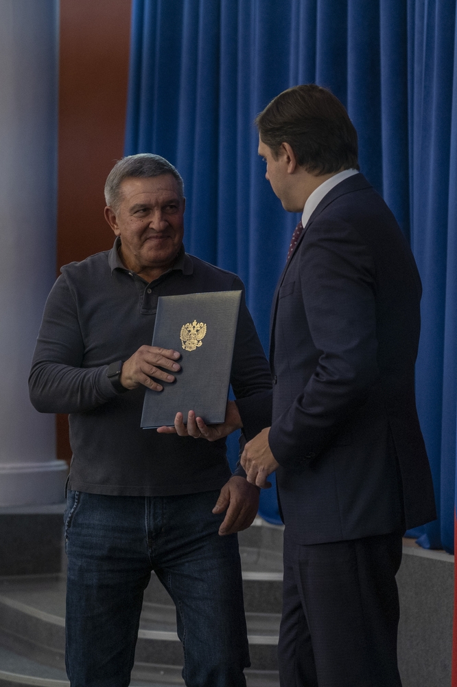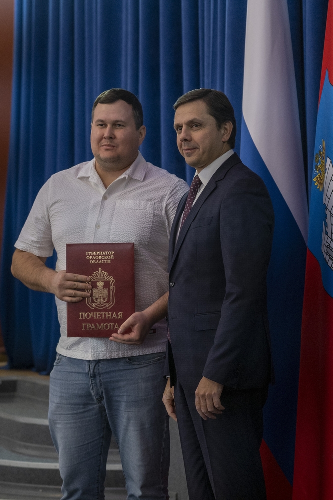 В преддверии Дня работника дорожного хозяйства в круглом зале областной администрации состоялось праздничное мероприятие с вручением наград лучшим представителям отрасли. Андрей Евгеньевич Клычков — губернатор Орловской области и Леонид Семёнович Музалевский — председатель Орловского областного Совета народных депутатов лично поздравили отличившихся сотрудников и вручили заслуженные награды.