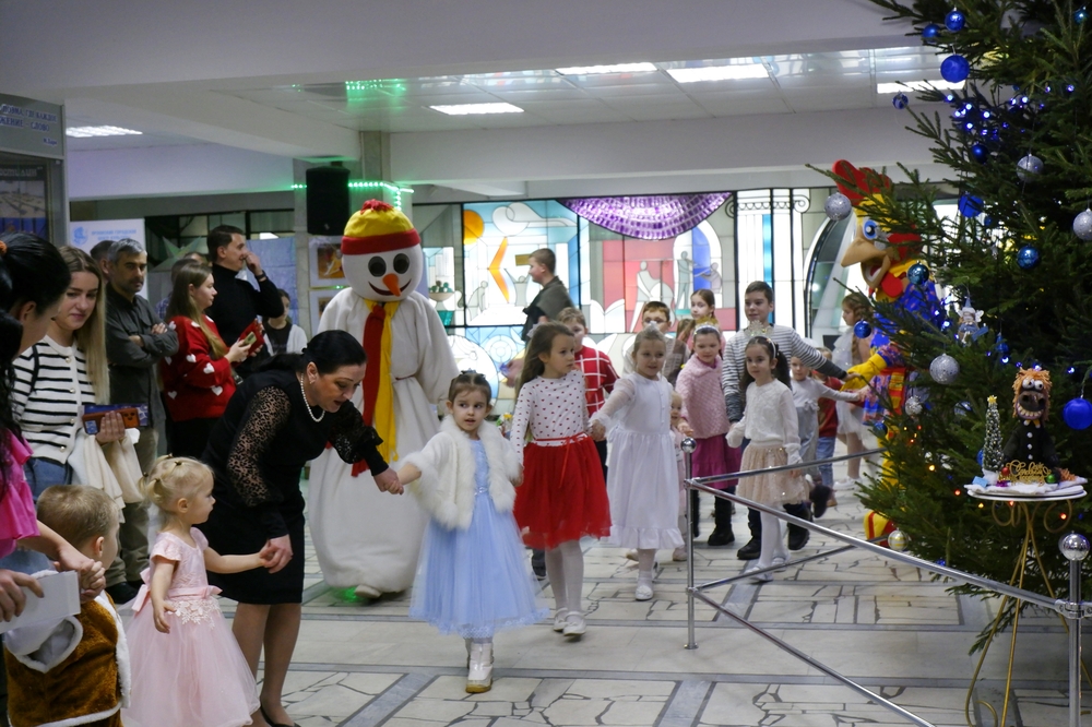 Дети стали участниками веселой новогодней интермедии у ёлки вместе с Дедом Морозом и Снегурочкой, что подарило всем присутствующим массу радостных эмоций. После увлекательного приключения гостей ждала волшебная новогодняя сказка «Золушка», которая погрузила всех в атмосферу настоящего чуда.