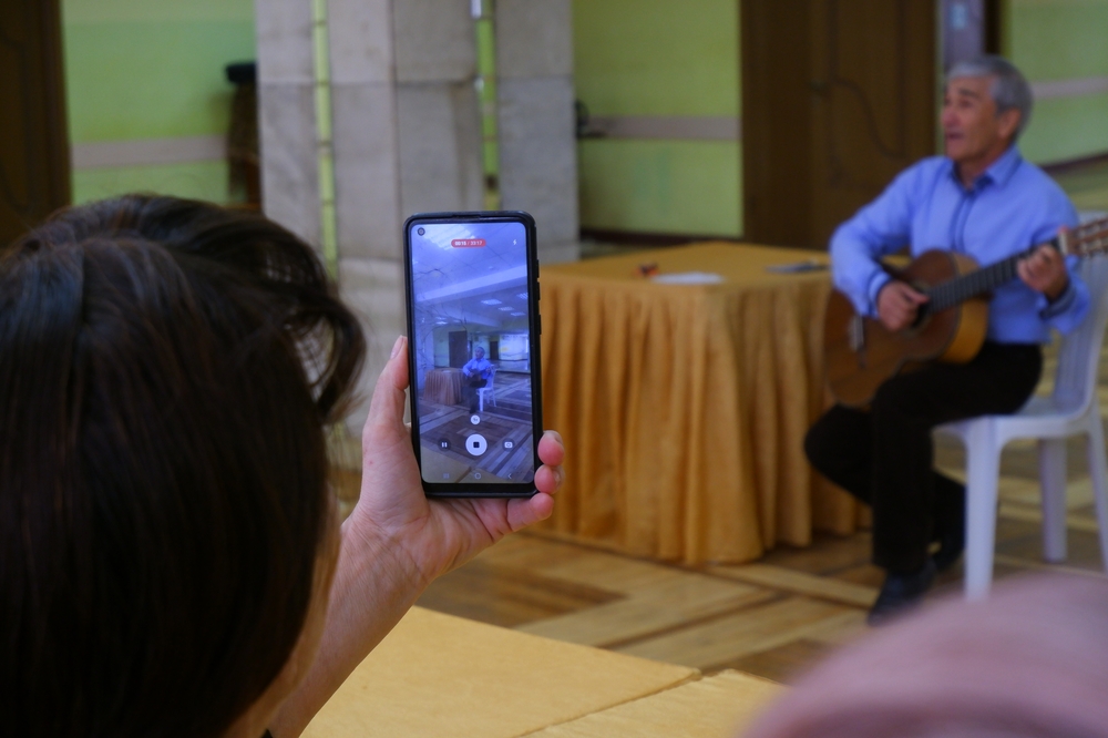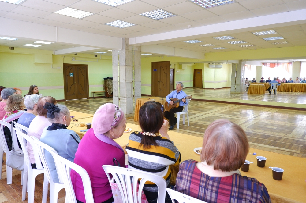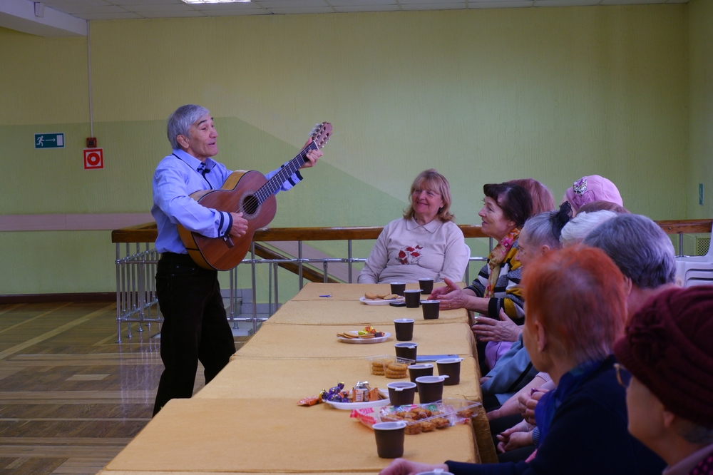 И, конечно, встреча не обошлась без душевного пения и виртуозной игры на гитаре Рахима Рахманова — его музыка создала по-настоящему тёплую и праздничную атмосферу.